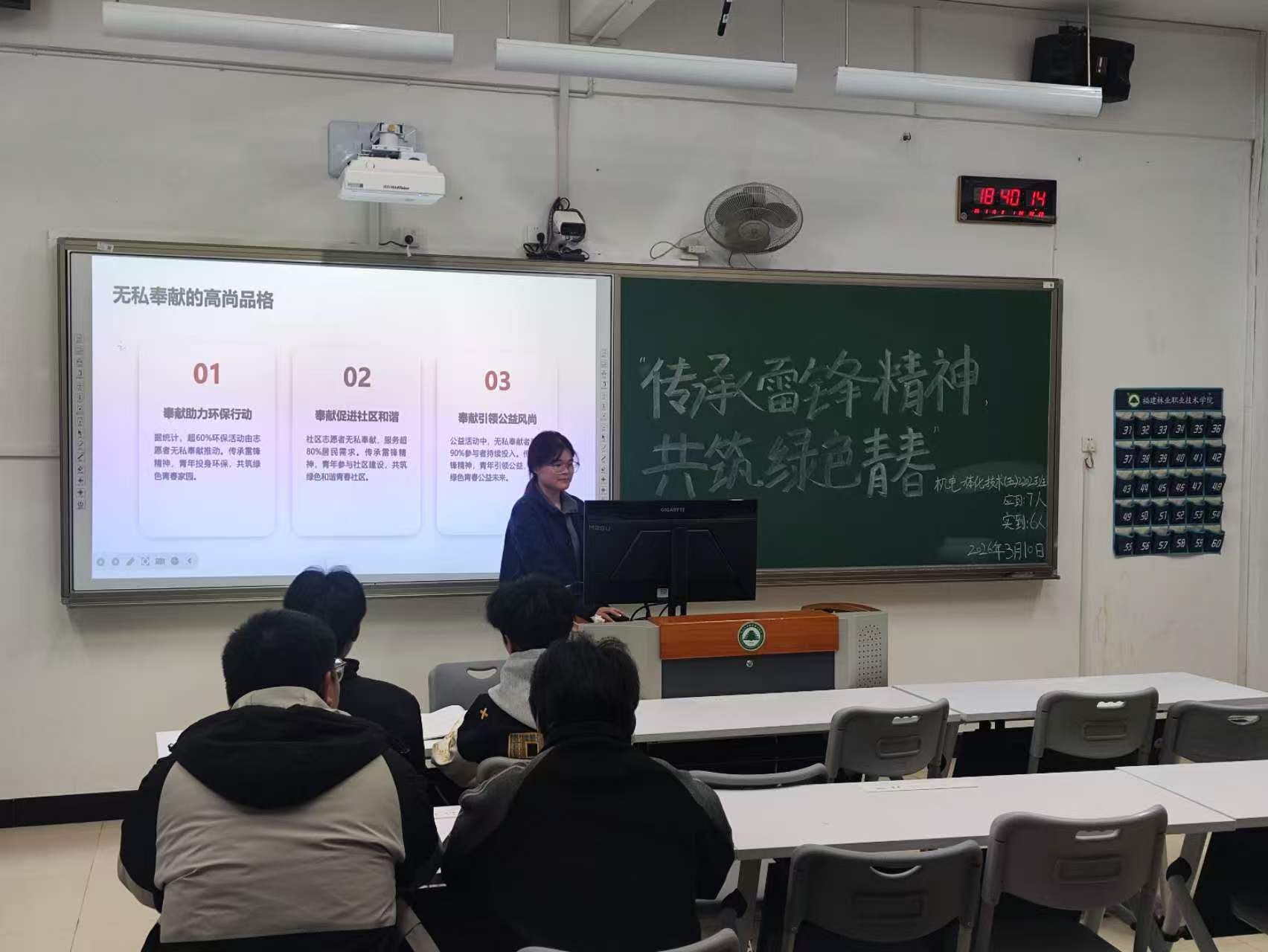 本次主题团日活动以“传承雷锋精神,共筑绿色青春”为核心,依托各班级团支部有序开展。活动引导全体团员深入学习雷锋精神的时代内涵,将雷锋同志全心全意为人民服务、无私奉献、爱岗敬业的精神,与新时代生态文明建设要求、团员守护生态的责任使命紧密结合。