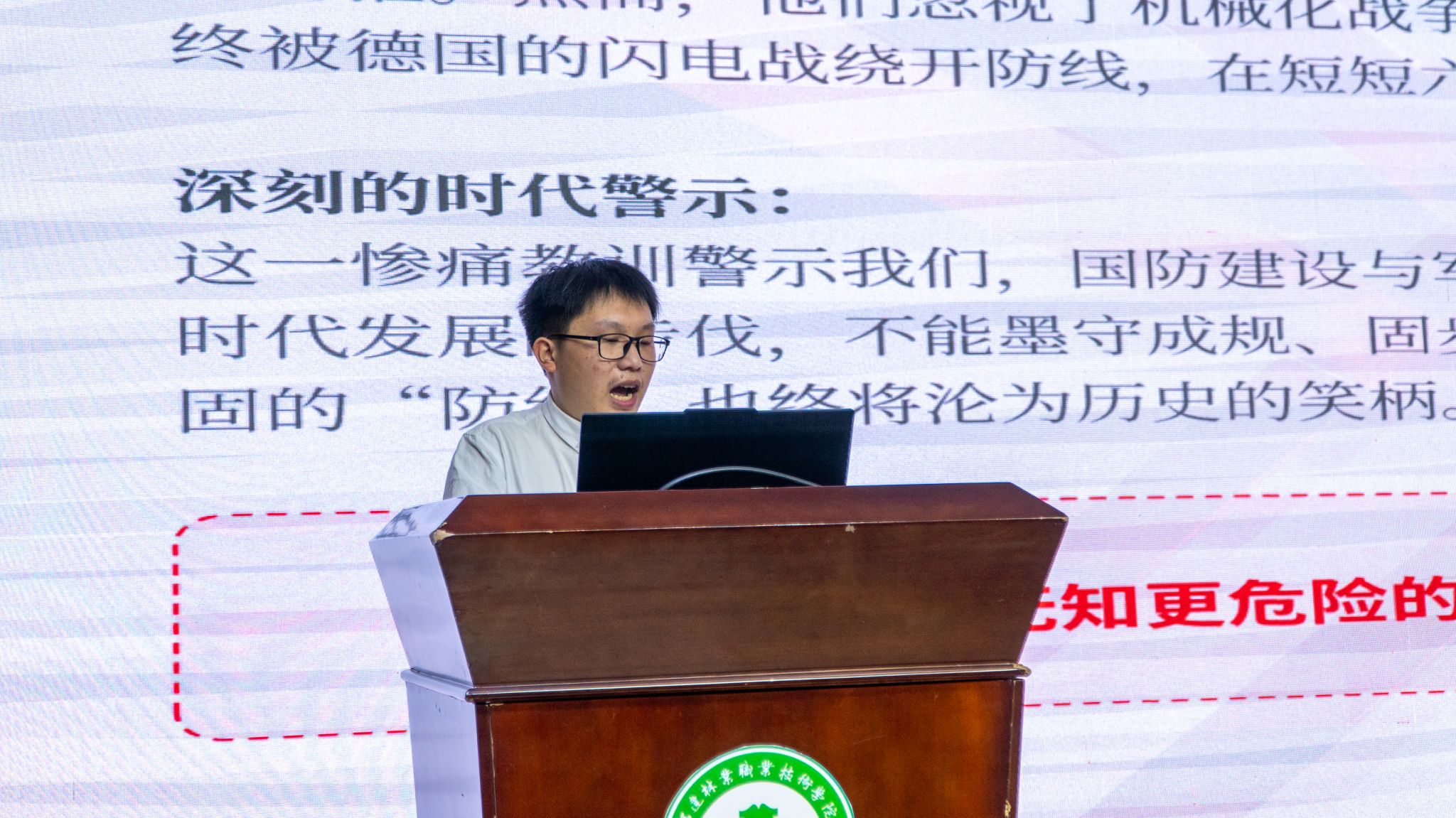比赛现场,各位参赛选手紧扣 “爱我国防”主题、精神昂扬,以演讲结合 PPT 展示及视频呈现的多元形式,立足自身学习经历与生活感悟,从不同角度生动讲述国防故事、抒发爱国情怀。大家以真挚饱满的情感、铿锵有力的语言,结合鲜活事例与情景演绎,为现场师生带来了一场兼具思想深度与情感温度的精彩演讲,充分展现了智能制造系学子心系国防、勇担使命的青春风貌。