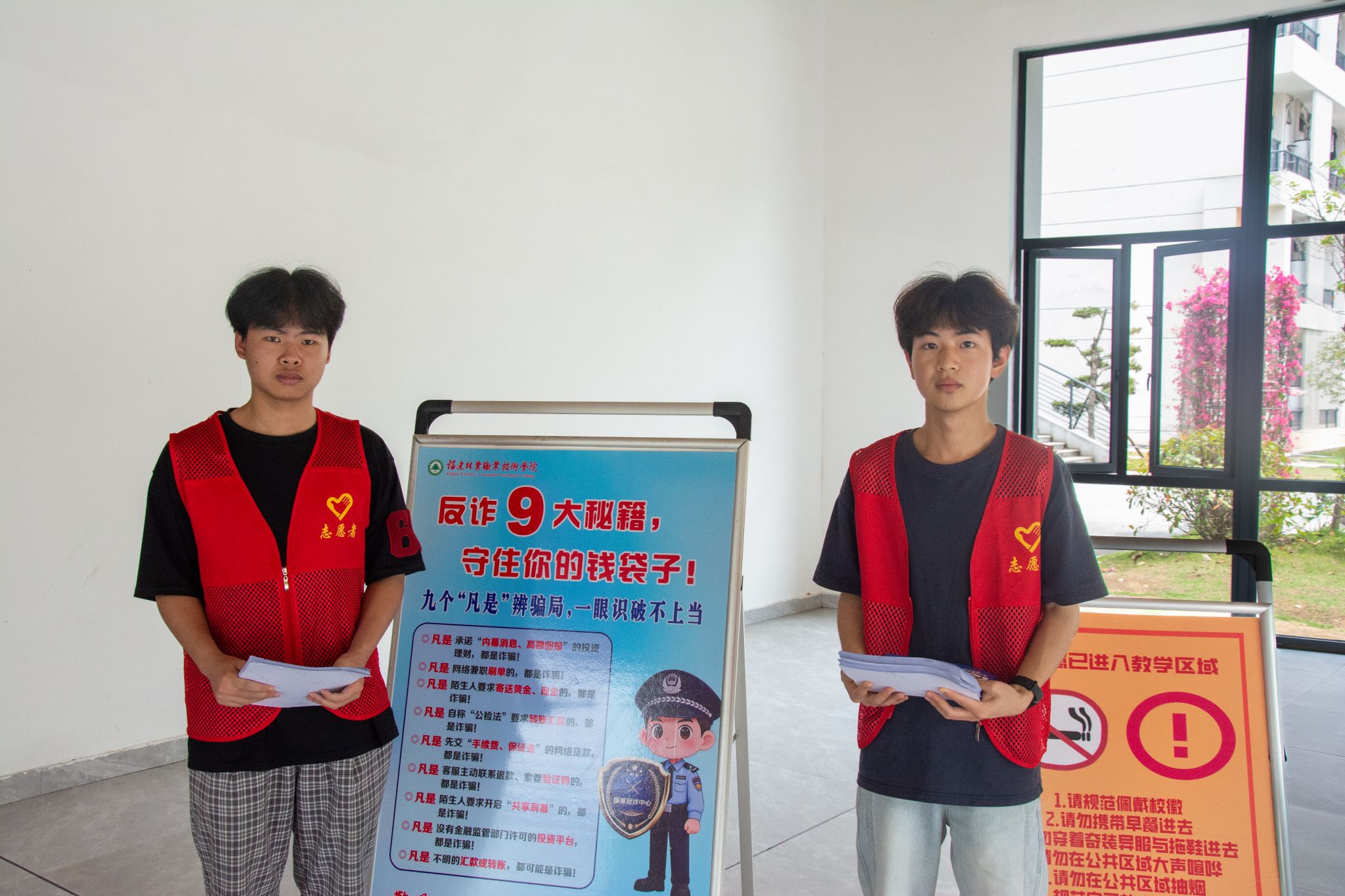 4月15日,智能制造系组织学生志愿者在智造楼和八号楼楼下开展反诈宣传活动。活动现场,志愿者们手持反诈宣传海报,向来往的同学们讲解近期高发的网络诈骗手法,如冒充客服退款、虚假兼职刷单,网络交友等,并用图文并茂的形式拆解诈骗套路,提醒大家“不轻信、不转账、不泄露”。同学们驻足观看海报、认真聆听讲解,并主动结合自身经历提出防范疑问。在“一问一答”的互动交流中,反诈知识变得更加生动具体。通过这种面对面宣传、点对点提醒的方式,有效增强了同学们的防范意识与辨别能力,切实为校园安全筑起了一道坚实的思想防线。