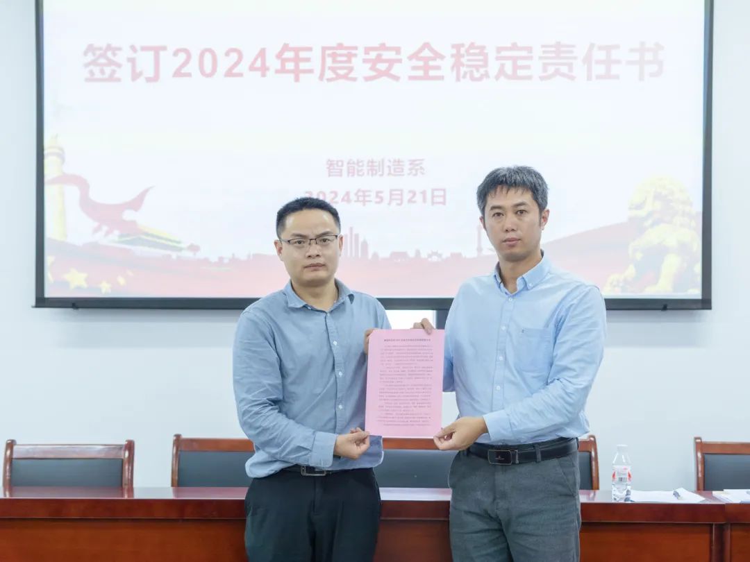 会后,系部教职工签订了《智能制造系2024年度安全稳定目标管理责任书》。