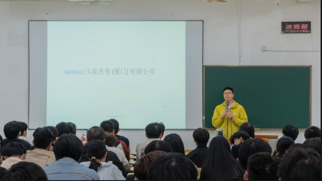 为扎实推进2026届毕业生就业工作,助力莘莘学子精准定位职业方向、掌握优质岗位资讯,构建校企间人才输送的畅通渠道,10月21日下午,智能制造系在教学楼210教室开展2026届毕业生校园招聘宣讲会。本次宣讲会邀请到玉晶光电(厦门)有限公司、厦门宏发电力电气有限公司、福耀汽车饰件有限公司、东南汽车、福建福光股份有限公司等5家知名企业,为我系学生提供了大量丰富的实习就业岗位,系党总支书记罗志斌和2026届毕业班辅导员到会指导。