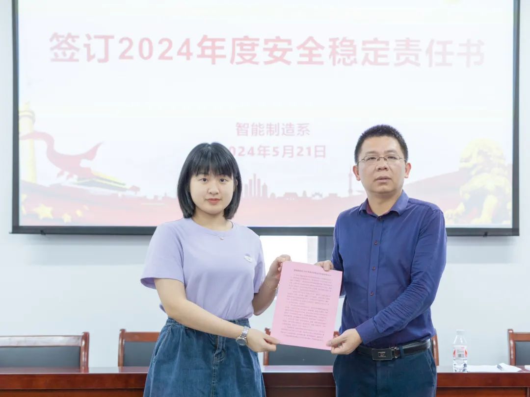 会后,系部教职工签订了《智能制造系2024年度安全稳定目标管理责任书》。