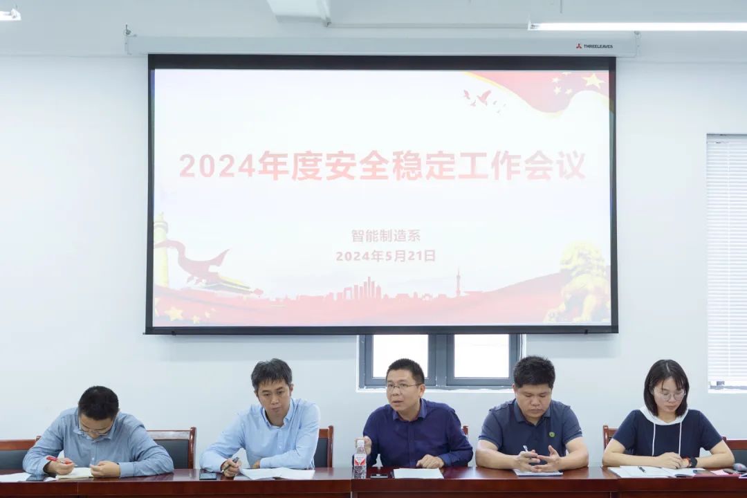 5月21日下午,智能制造系于智造楼5楼会议室召开2024年度安全稳定工作会议,会议认真总结了2023年系部安全稳定工作情况,部署了2024年安全稳定各项工作,智能制造系党政领导班子、全体教师参加了会议,会议由系副主任(主持工作)官飞主持。