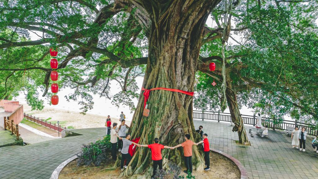 在洲头研学基地,大家围绕千年古榕,感受乡村景观文化特色,欣赏自然生态与人文景观相结合的美丽乡村画卷。