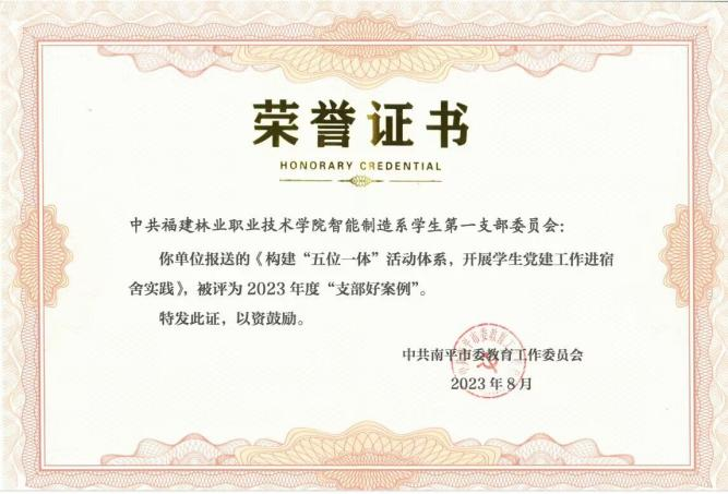 以“重学风、讲协作、促提高”学风建设活动为载体,提供宿舍1对1学业帮扶、党员宿舍结对的平台,在实施“深学争优、敢为争先、实干争效”行动,深入学习廖俊波同志等先进典型,健全常态化学习机制,创新学习载体,大力发扬斗争精神、专业精神、实干精神、团结精神,充分发挥学生党员在学风建设中的引领作用,涌现出一批又一批学霸党员典型个人。如:学生党员中有3人获国家奖学金,8人获国家励志奖学金,4人在福建省职业院校技能大赛中获奖,获得学业奖学金的党员学生数占总体党员学生数的96%,多人获评“三好学生”“优秀学生干部”“优秀共青团员”“优秀共青团干部”“青年志愿者工作积极分子”等荣誉称号。与此同时,2023年支部选送的案例《构建“五位一体活动体系,开展学生党建工作进宿舍实践》获评中共南平市委教育工委“支部好案例”、2023年支部被学院评为集体党员先锋岗;支部教师党员张碧清主持的技能大师工作室获2023年省级技能大师工作室;支部书记秦英爱所写学生心理案例《每盏花苞都该被呵护—校园危机自杀事件》获得省级心理教育案例一等奖、通过党员先锋岗验收、获得学院2023年度“优秀辅导员”、学院第七届辅导员素质能力大赛获得三等奖、学院2023年辅导员工作案例一等奖;支部党员教师黄悦荣获2022年学院党员先锋岗、荣获“优秀共青团干部”、2023年学院辅导员优秀工作案例三等奖;支部学生潘宇洲在“智能飞行器应用技术”赛项获全国职业院校技能大赛三等奖等等。党支部在系党总支的领导下,切实做到了工作业绩优,作风建设好,精神面貌佳,服务水平高。