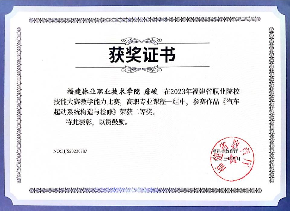 在快速发展的时代背景下,教育也需要不断创新与变革。詹老师非常明白这一点,所以他带领教师团队积极的参加了高职院校教师教学能力大赛,以赛促教、以赛促改,在比赛中探索着职业教育的新理念和新模式。经过了不断的参赛,多次的打磨,把《汽车电器设备构造与检修》这门课程打造成了把三维目标和企业用人需求相融合、把教学过程和企业生产过程相融合;把工作任务和竞赛经典案例相融合、把技能考核和竞赛技能标准相融合;把教学内容和1+X证书内容相融合、把教学评价和1+X考核标准相融合的“三维度、六融合”的岗、课、赛、证深度融合课程体系。解决了汽车专业人才培养过程中,制定检修方案能力弱、排除实车故障能力弱、安全规范操作能力弱故障检修逻辑思维难提升、规范检修求精意识难维系、方案制定创新意识难培养的三弱三难问题,提高了人才培养的质量。