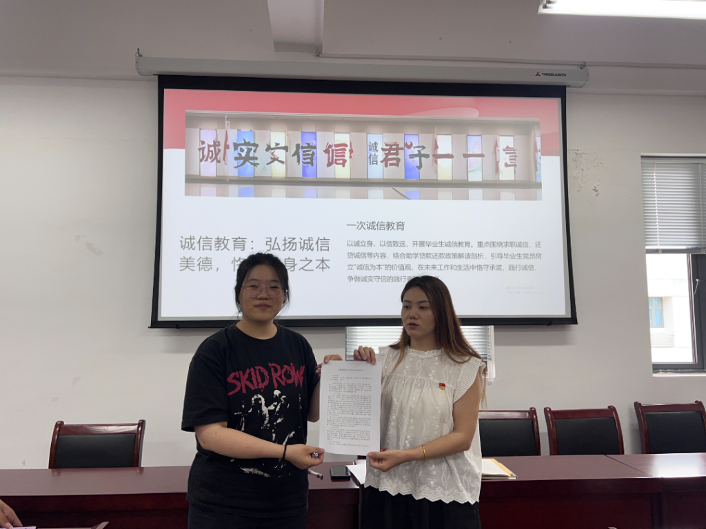 以诚立身,以信致远。秦书记结合助学贷款还款等政策,开展毕业生诚信教育,并与在场毕业生党员签订《诚信告知书》,引导毕业生党员在未来工作和生活中恪守承诺、践行诚信,争做诚实守信的践行者和传播者。