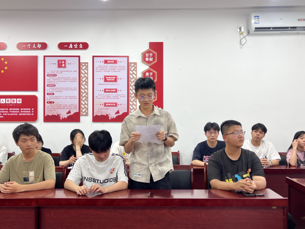 铮铮誓言铭初心,砥砺奋进新征程。在支部书记的带领下,全体毕业生党员面向党旗,高举右拳,庄严宣读入党誓词。通过铿锵有力的誓言,唤醒党员的身份意识和责任意识,激励毕业生党员始终牢记入党时的承诺与信念,在未来工作中永葆共产党员的先进性和纯洁性,以实际行动践行对党的忠诚。