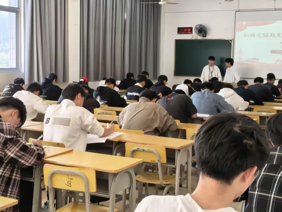 考试采用闭卷形式进行,着重考察入党积极分子对党的基础理论的掌握程度。考试过程中,大家沉着应试,态度端正,作答认真,自觉维护考场秩序,全面展现了入党积极分子应有的政治自觉与优良作风。