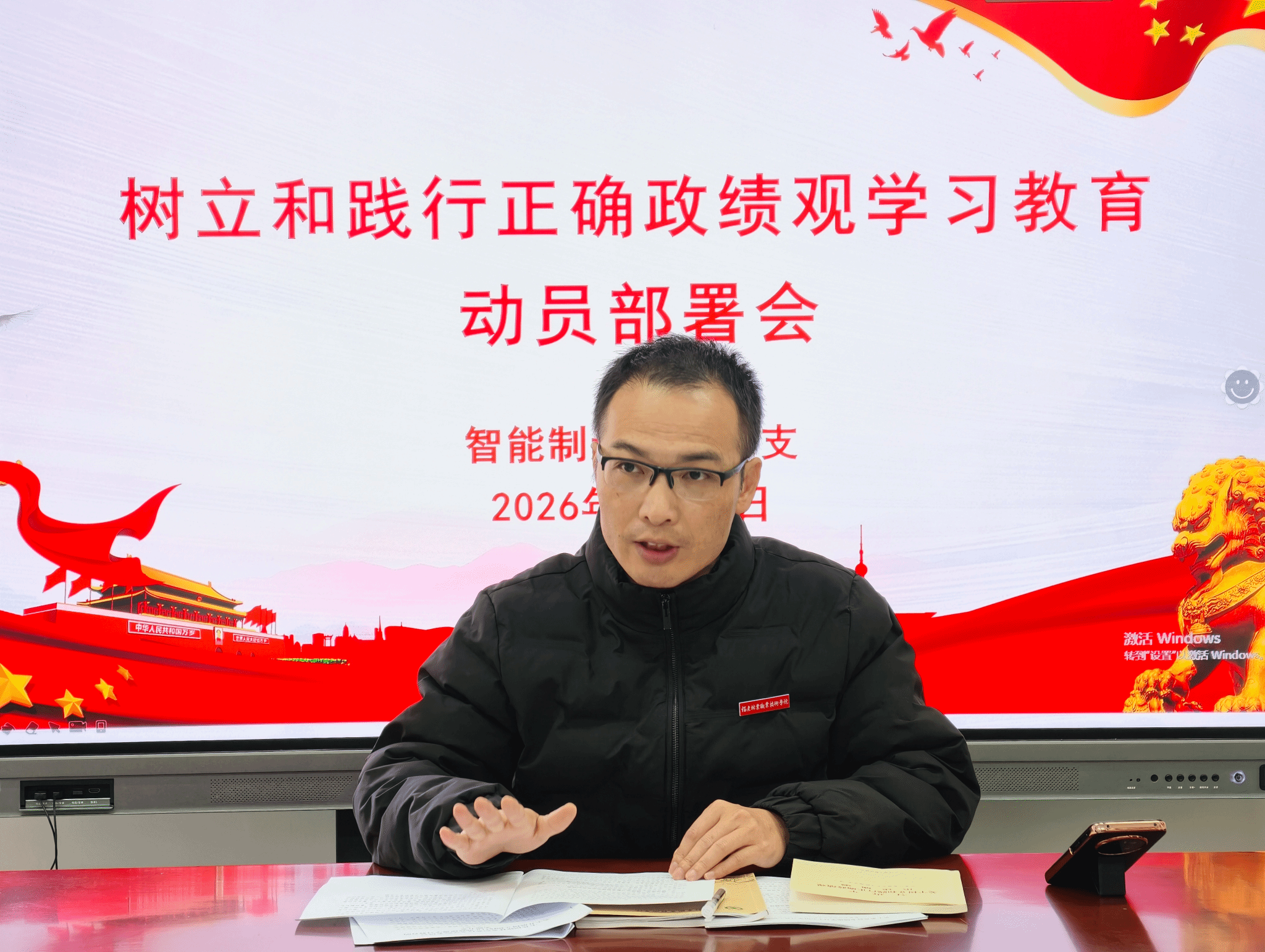 3月13日上午,智能制造系召开树立和践行正确政绩观学习教育动员部署会,会议深入学习贯彻习近平总书记关于树立和践行正确政绩观学习教育的重要讲话和重要指示精神,传达学习中央、省委和院党委相关要求,研究部署在全系深入开展树立和践行正确政绩观学习教育工作,系党总支副书记(主持工作)林志鹏主持会议并讲话,系部党政领导班子成员、各支部书记参加会议。