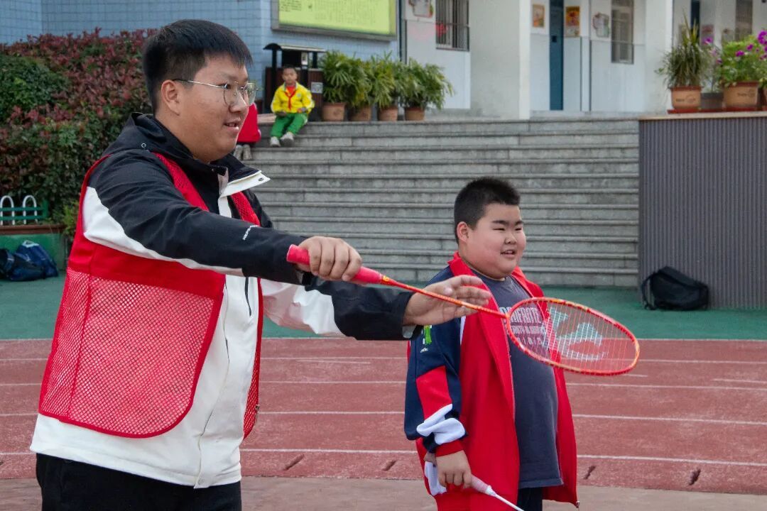 与此同时,运动场上的活力同样热烈。篮球、羽毛球、乒乓球等运动区域划分明确,志愿者们提前检查器材、规划场地,活动开始后,他们化身 “教练”,耐心指导孩子们握拍姿势、投篮技巧,从基础动作分解到简单团队配合,一步步带领孩子们感受运动的魅力。孩子们在阳光下奔跑跳跃,汗水浸湿了衣衫,却挡不住脸上的笑容与不服输的劲头,志愿者们则在一旁加油鼓劲,偶尔加入比赛与孩子们互动,欢笑声、呐喊声与运动器械的碰撞声交织在一起,成为校园里最鲜活的青春旋律。