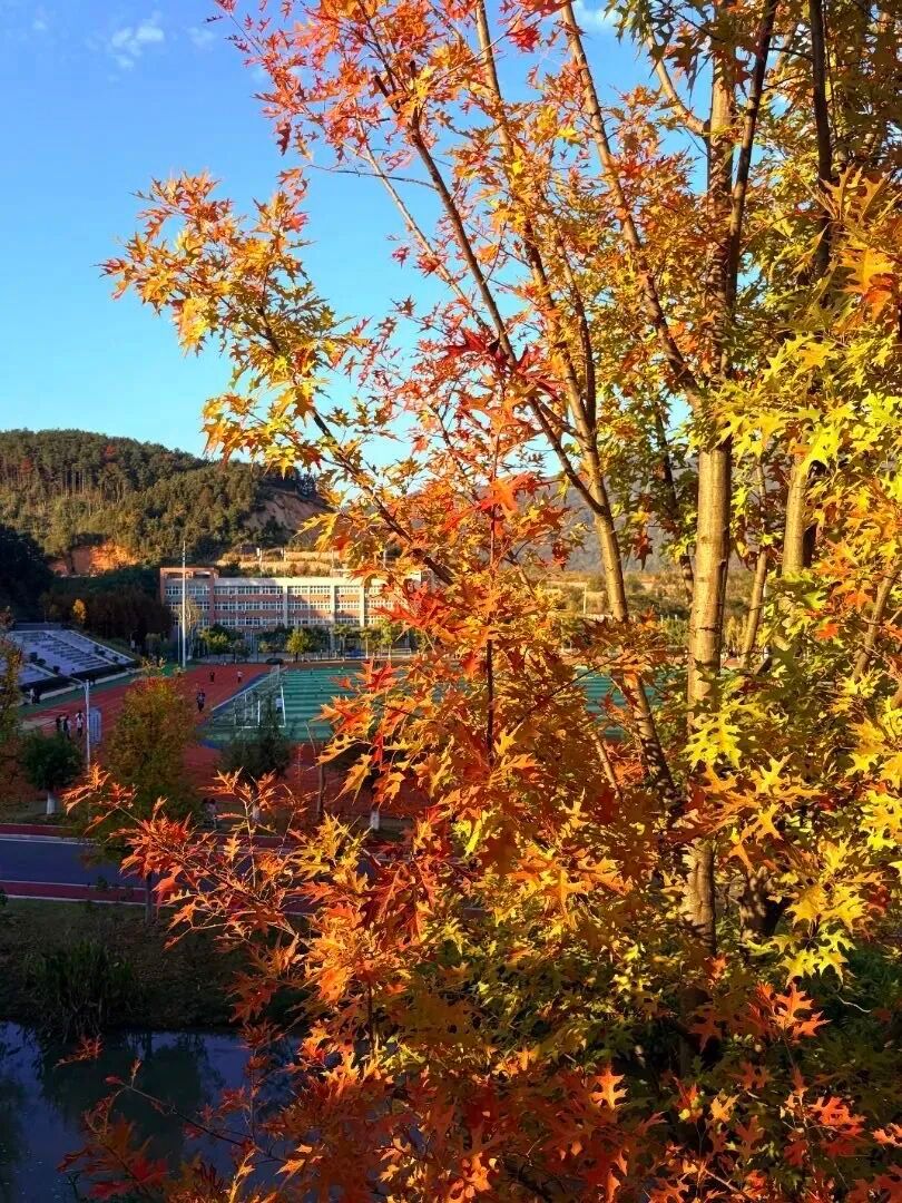 借彩叶作框景,既藏秋意层次又显空间纵深感。以秋叶柔化校园硬朗线条,用日常角落的秋光,定格青春与季节的温柔碰撞。