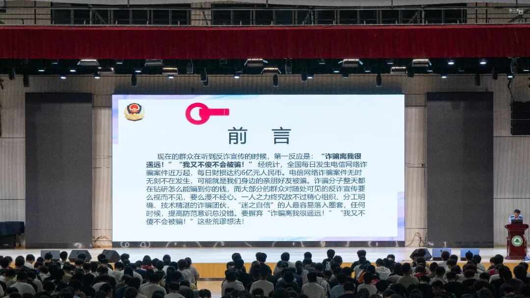 林泽宇警官结合高校常见安全隐患,用生动案例为新生敲响安全警钟。他通过剖析电信诈骗的典型套路,如“冒充客服”“网络刷单”“校园贷陷阱”等,提醒同学们“不轻信、不转账、不泄露个人信息”,并现场教授“国家反诈中心”APP的使用方法。针对实验室安全、宿舍用电规范等场景,林警官以图片和视频形式展示违规操作的严重后果,强调“安全无小事,防范靠大家”。互动环节中,新生踊跃提问,林警官逐一解答,现场气氛热烈。
