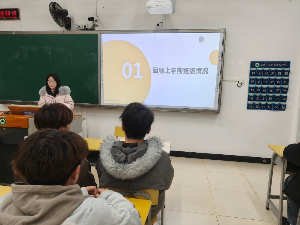 在班会上,辅导员们首先对上学期班级的整体情况进行了总结,回顾了班级在学习、纪律、活动等方面的成绩与不足。随后,他们明确了本学期班级的目标和任务,鼓励学生们在新的学期里继续努力,争取更大的进步。为了引导学生制定个人学习计划和目标,辅导员们还分享了科学有效的学习方法,并鼓励学生根据自身实际情况,合理规划时间,提升学习效率。