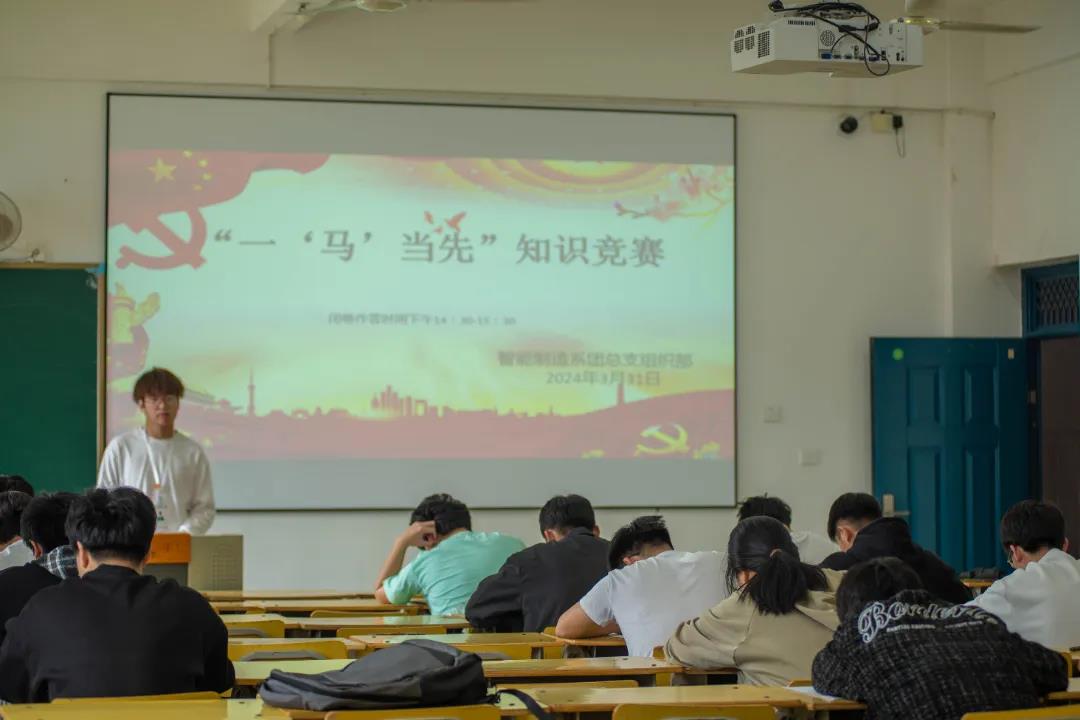 红色浪潮,知识盛宴!为深入学习贯彻习近平新时代中国特色社会主义思想和党的二十大精神,引导青年学子坚定不移听党话、跟党走。2024年3月31日智能制造系开展了“一马当先”知识竞赛。
