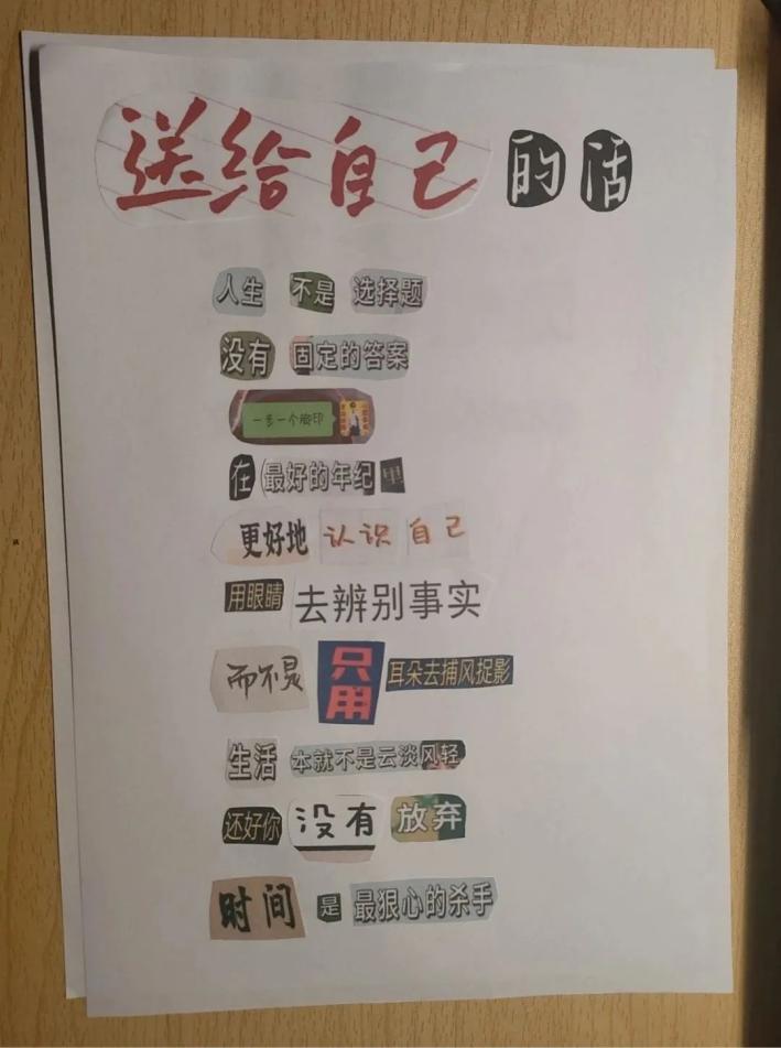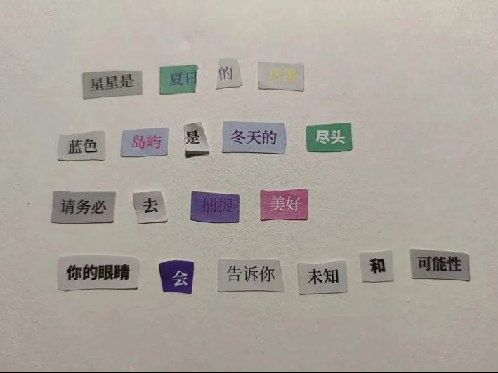 通过本次拼贴诗的作品征集,同学们以字传情,发挥天马行空的想象,创作出自己的诗篇,展现文学的魅力。调动同学们对艺术的热情,将自己的审美再创造,创作出属于自己的作品。