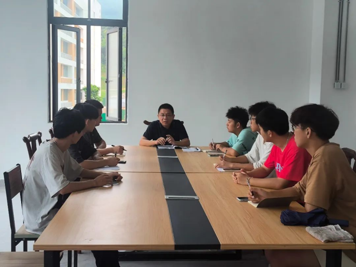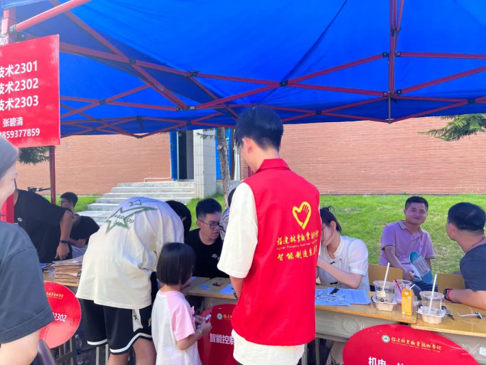 智能制造系学生第一党支部的成员们在支部书记秦英爱的带领下,早早地来到了迎新地点,开始准备工作。布置完成后,系党总支书记罗志斌组织一场简短的动员会,叮嘱、安排了工作的重点、预判可能出现的问题。动员完毕后,同志们个个精神昂扬,快速投入迎新工作中。