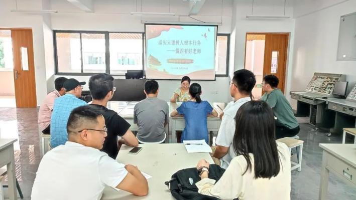 为持续加强系部师德师风建设,进一步凝聚师德正能量,9月26日下午,智能制造系教工党支部书记林德颖在智能制造楼402教室为支部全体党员上《落实立德树人根本任务——做四有好老师》专题党课。
