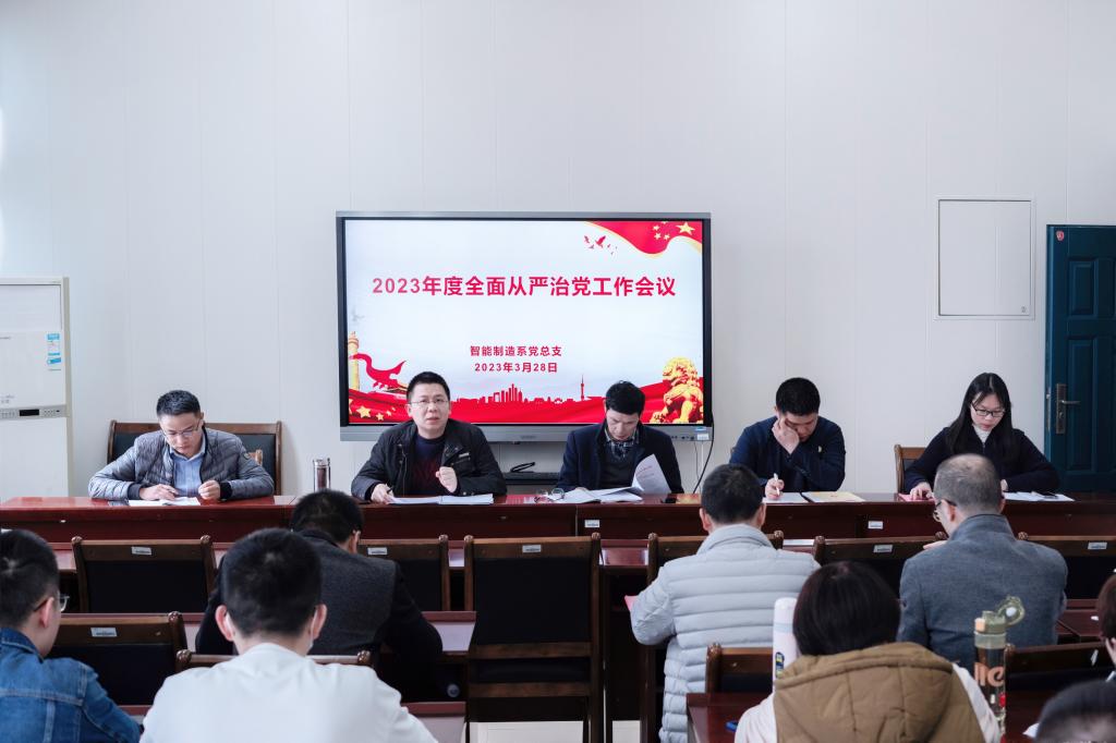 为了贯彻落实3月23日召开的学院2023年度全面从严治党工作会议精神,3月28日下午,智能制造系党总支在系部4楼会议室召开2023年度全面从严治党工作会议,会议认真总结2022年工作,部署2023年系部全面从严治党工作任务。院党委委员、副院长谢金生出席会议,系党政领导班子、系部全体教师参加了会议,会议由系党总支书记、主任罗志斌主持。