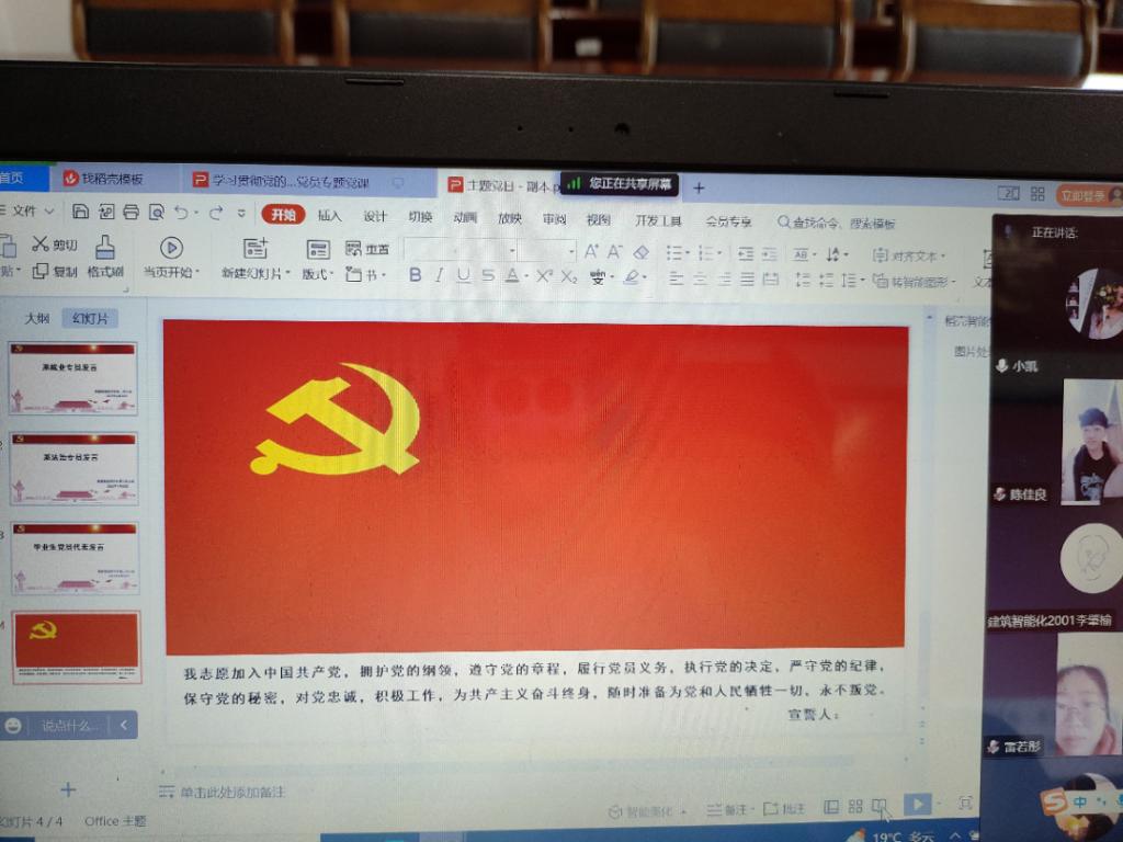 最后,在支部书记陈邦凯老师的带领下,每一名党员高举右拳,在高昂的领誓声中,重温了入党誓词,作出了自己对党的庄严承诺。