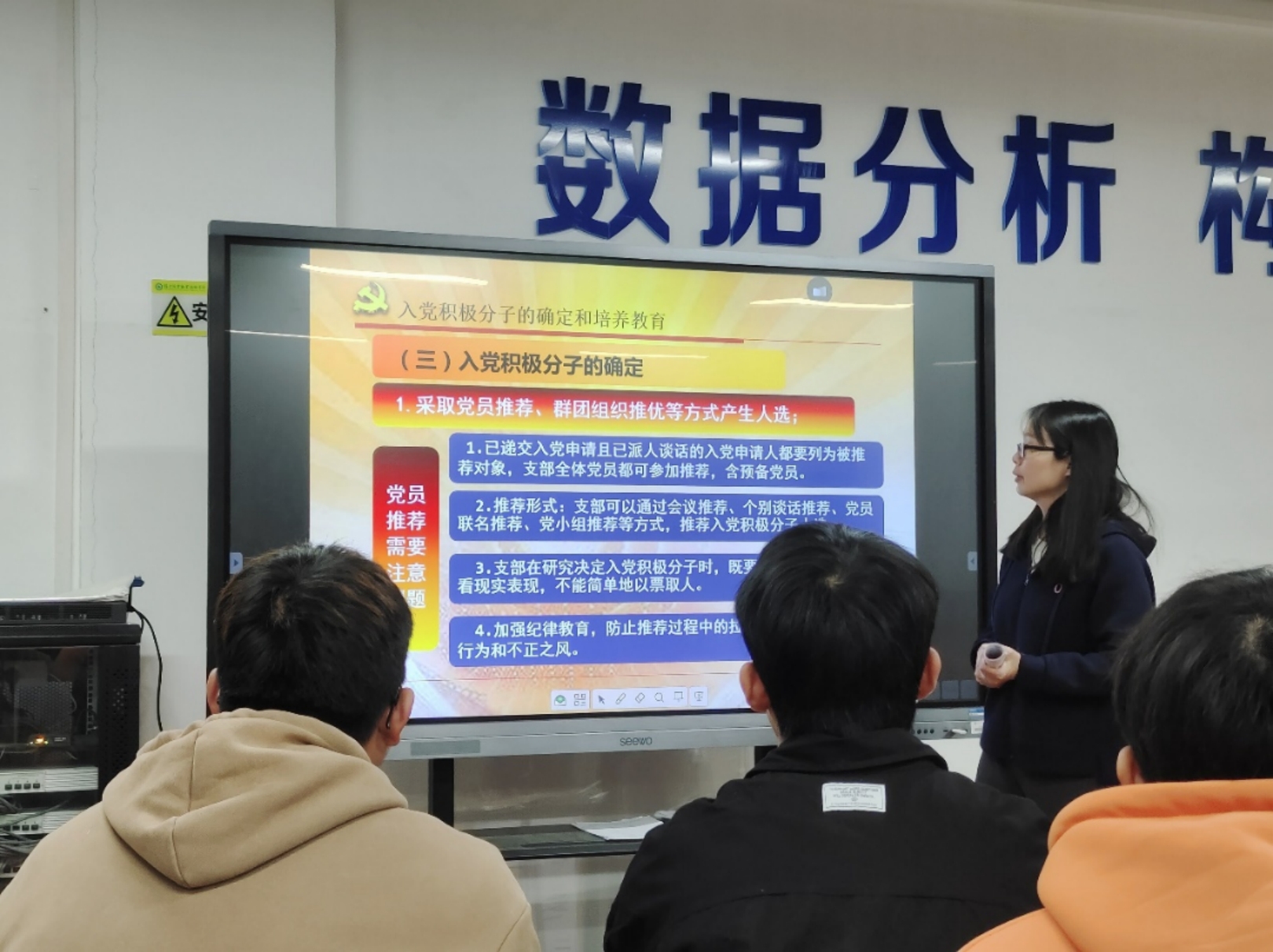 随后,系党总支专职组织员张良英为全体党小组成员作了题为《坚持标准严格程序从严从实做好发展党员工作》培训。张良英组织员详细讲解了从入党申请书递交开始,到入党积极分子、发展对象、预备党员、预备党员转正等各个环节中所应当坚持的标准、程序,以及在工作过程中应当要注意的问题,要求在发展党员过程中必须要做到严格程序、从严从实规范做好工作。