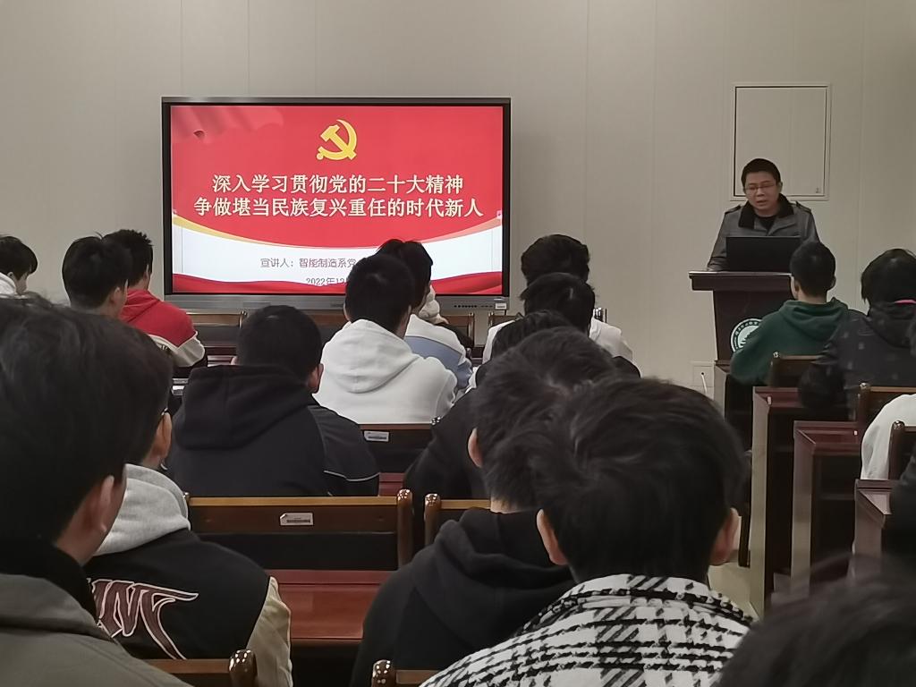 为进一步学习宣传贯彻党的二十大精神,扎实推动党的二十大精神在青年学子中真正入脑入心,12月2日上午,智能制造系党总支书记、主任罗志斌在系会议室为所联系班级学生作题为《深入学习贯彻党的二十大精神,争做堪当民族复兴重任的时代新人》的专题辅导报告。计算机应用技术2103班全体同学参加。