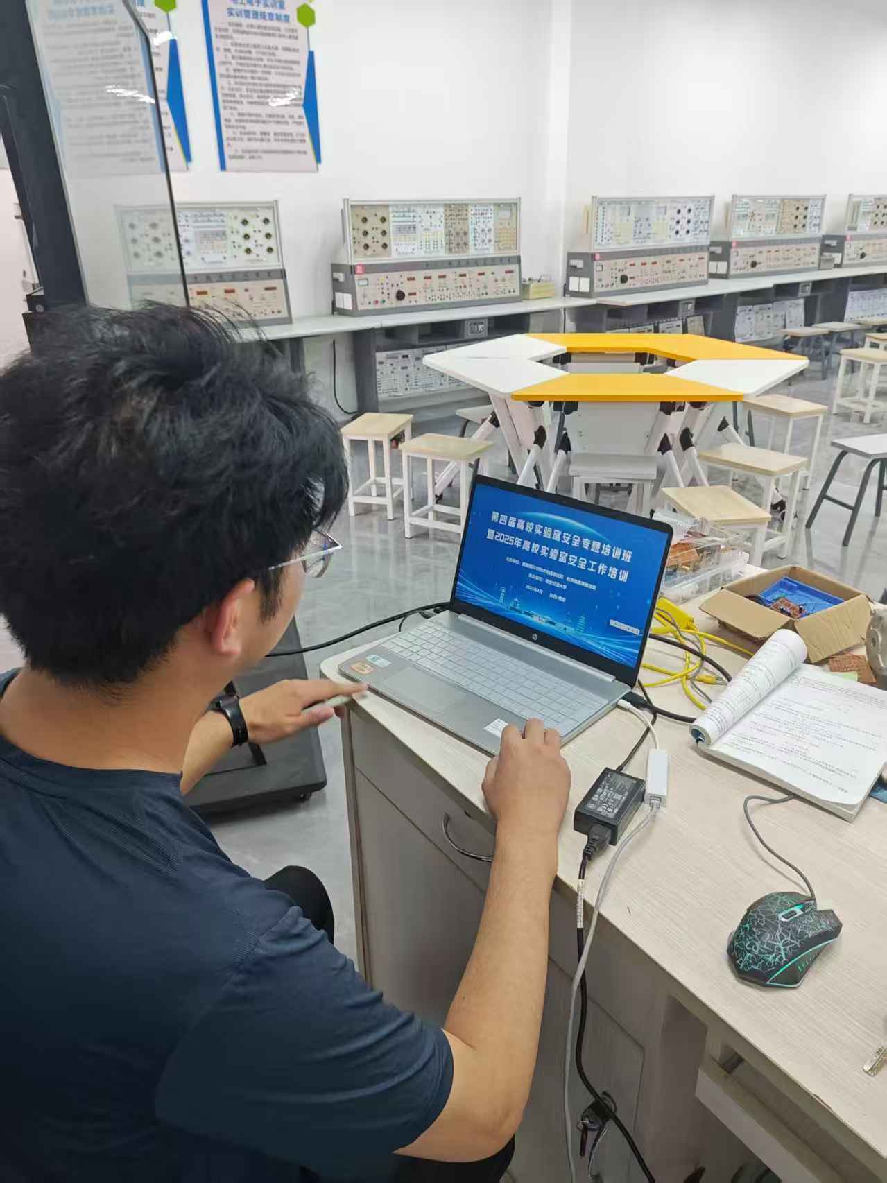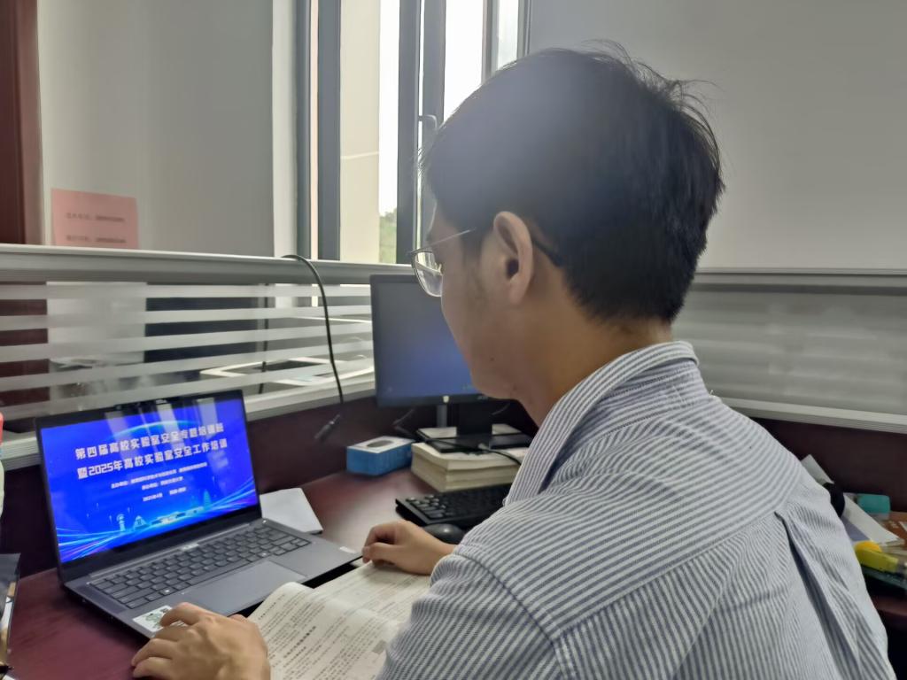 为进一步加强学校实验室安全管理,提升师生安全意识与应急处置能力,2025年4月23日上午智能制造系全体专兼职实验员参回高校实验室安全工作培训。此次培训采用线上线下相结合的方式,覆盖各实验室管理人员,参与人数达16人,为学校实验室安全工作注入了新的活力与保障。