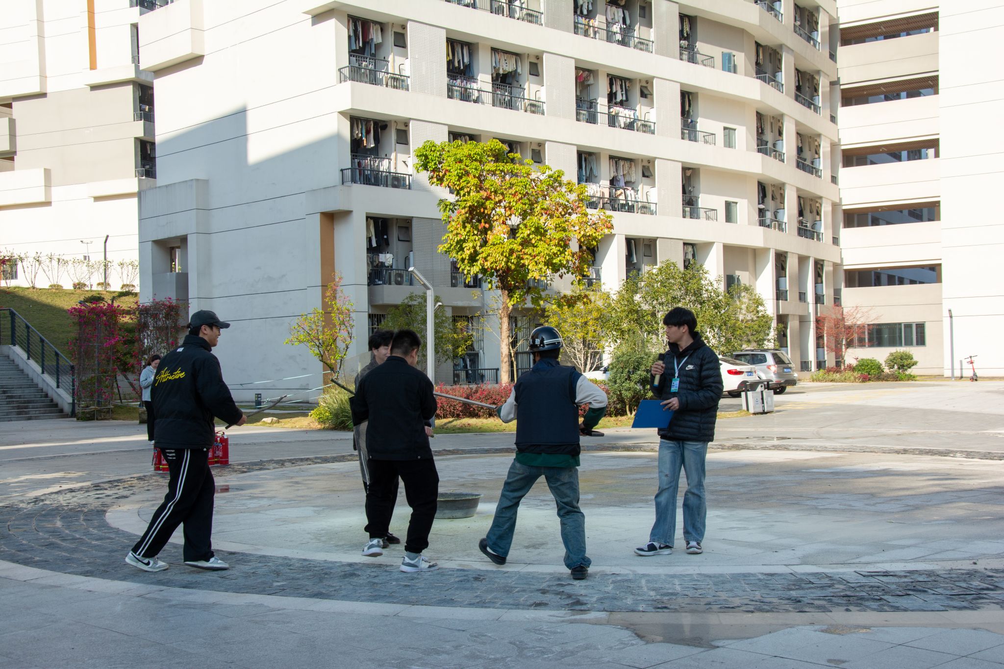全体人员迅速集结至智造楼下指定安全区域后,系部开展安全知识宣讲与防爆实操演练。现场工作人员讲解防爆常识与应急处置要点,示范防爆器材使用规范,强化学生面对突发险情的应对意识。随后,灭火实操演练有序展开,工作人员示范灭火器“提、拔、握、压”标准操作,指导师生逐一上手体验,近距离掌握灭火技能,将理论知识转化为实战能力。
