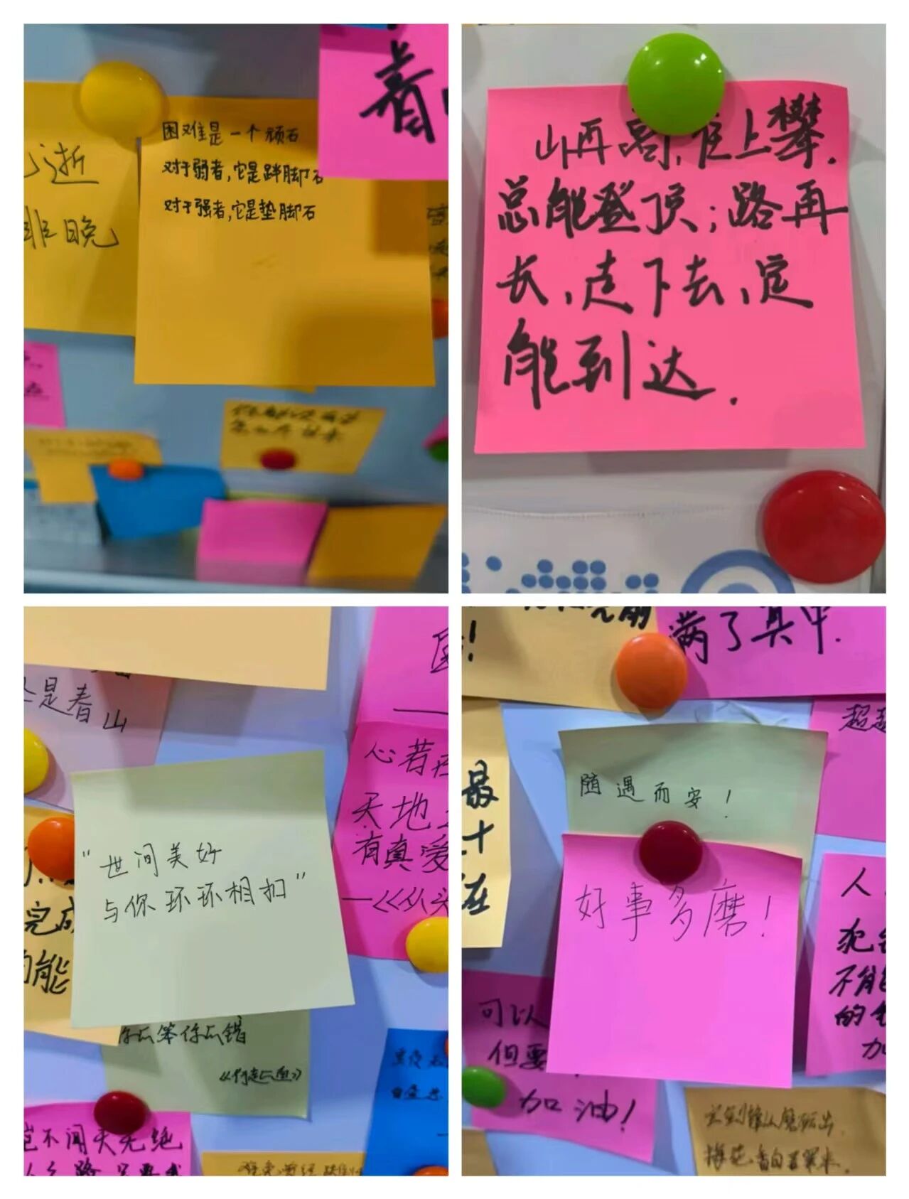活动期间,同学们热情参与,既有“道阻且长,行则将至”的经典箴言,也有“平凡之路”中“我曾经跨过山和大海,也穿过人山人海”的励志歌词,每一条分享都饱含着直面困境的勇气。