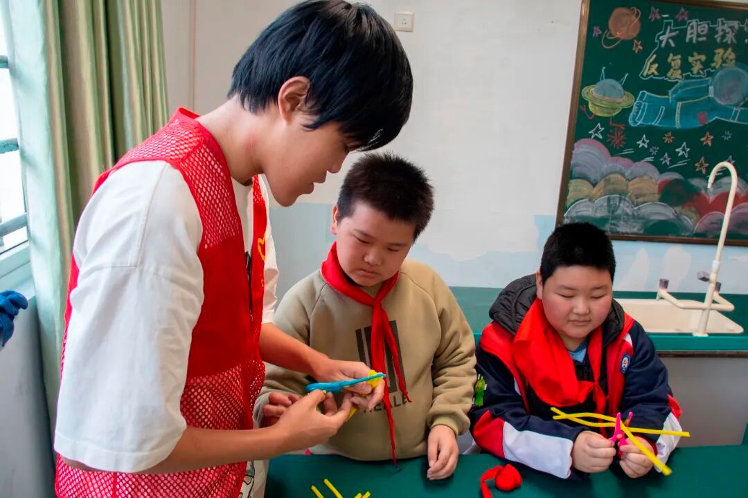 活动中,志愿者们穿梭在孩子之间,或俯身纠正缠绕手法,或帮忙整理材料,孩子们则发挥想象,用手中的扭扭棒勾勒出形态各异的作品,教室里不时响起 “老师你看我做的”“这个颜色搭配真好看” 的欢快交流,轻松愉悦的氛围中,孩子们不仅体验了手工创作的乐趣,更锻炼了动手与审美能力。