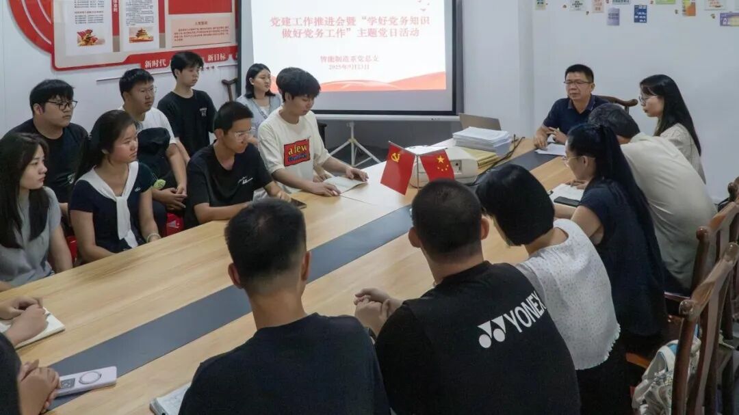 为扎实做好新学期系部党建工作,2025年9月23日,智能制造系党总支在“一站式”学生社区召开党建工作推进会暨“学好党务知识 做好党务工作”主题党日活动,会议由系党总支专职组织员张良英主持,学生党支部书记、兼合式党支部书记、学生党建服务中心全体成员参加。
