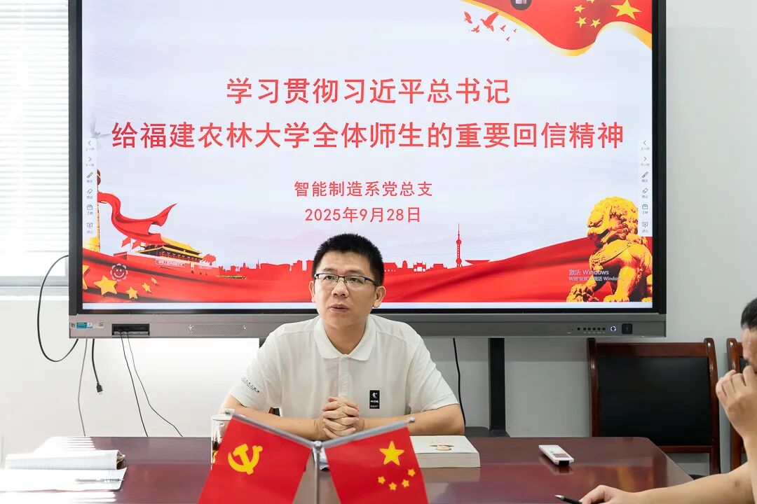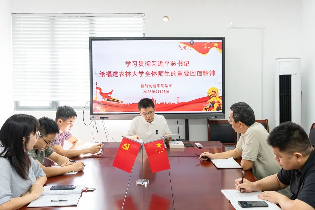 2025年9月28日,系党总支书记罗志斌在智造楼4楼会议室主持召开系党总支中心组学习会,传达学习习近平总书记给福建农林大学全体师生的重要回信精神。会议结合系部实际,安排部署贯彻落实工作。系党总支中心组学习会成员参加会议。