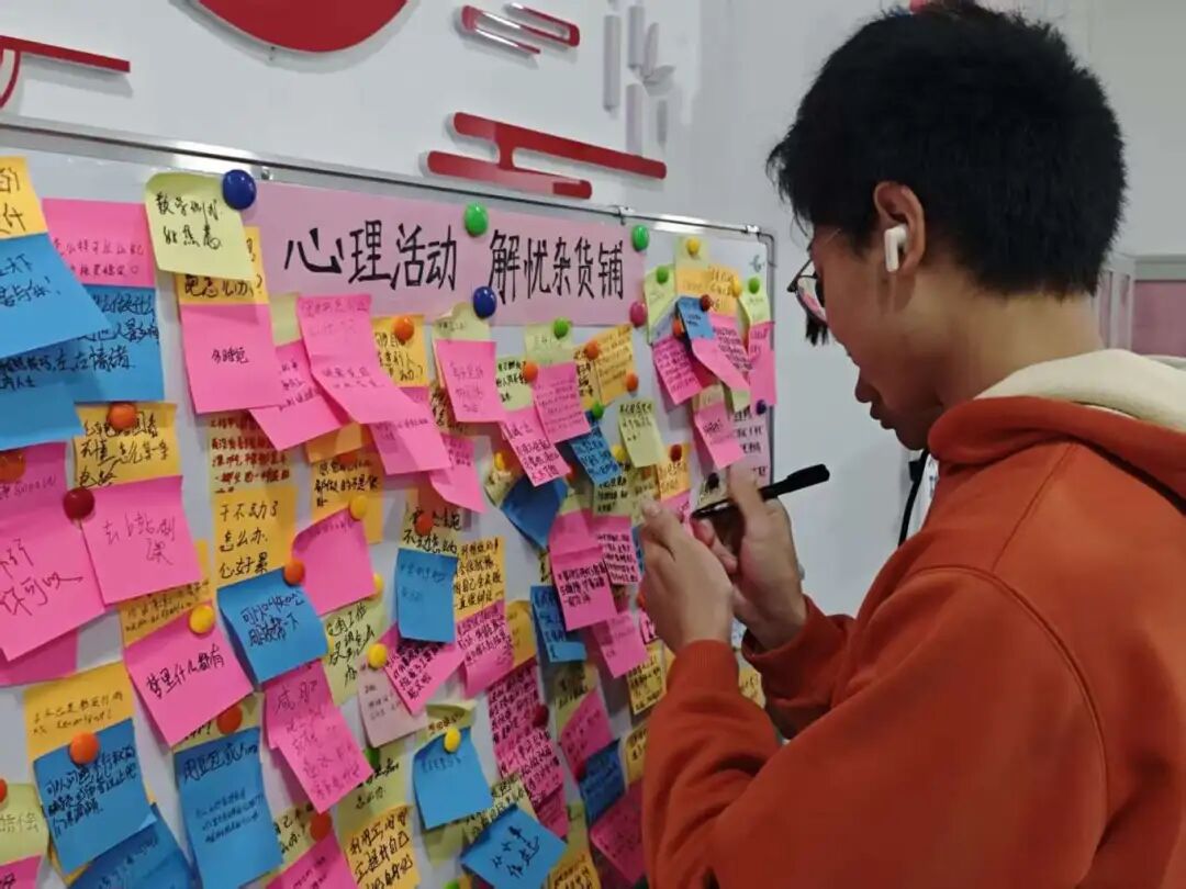 活动过程中,同学们纷纷驻足参与,或认真写下自己的困惑,或轻声阅读他人的烦恼,用心分享实用的建议。