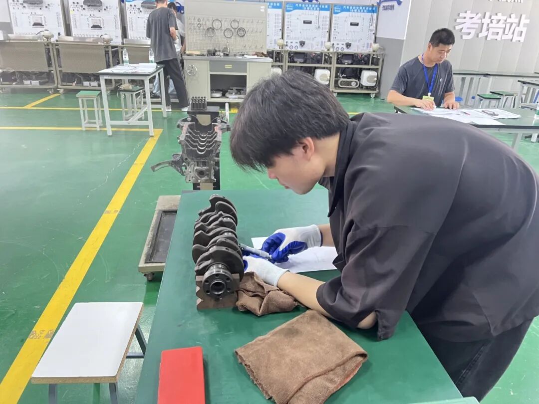 此次电工(高级)与汽车维修工(高级)职业技能等级认定采取理论笔试及现场实际操作的认定方式。电工(高级)实操认定包括电路板焊接与检测、电气线路的安装与排故、PLC硬件接线与程序调试。汽车维修工(高级)实操认定包括轿车故障诊断与维修、曲轴磨损程度检测、变速器的拆装和调试。考试过程中,各考场纪律严明,秩序井然。