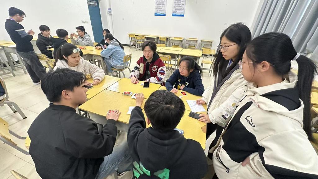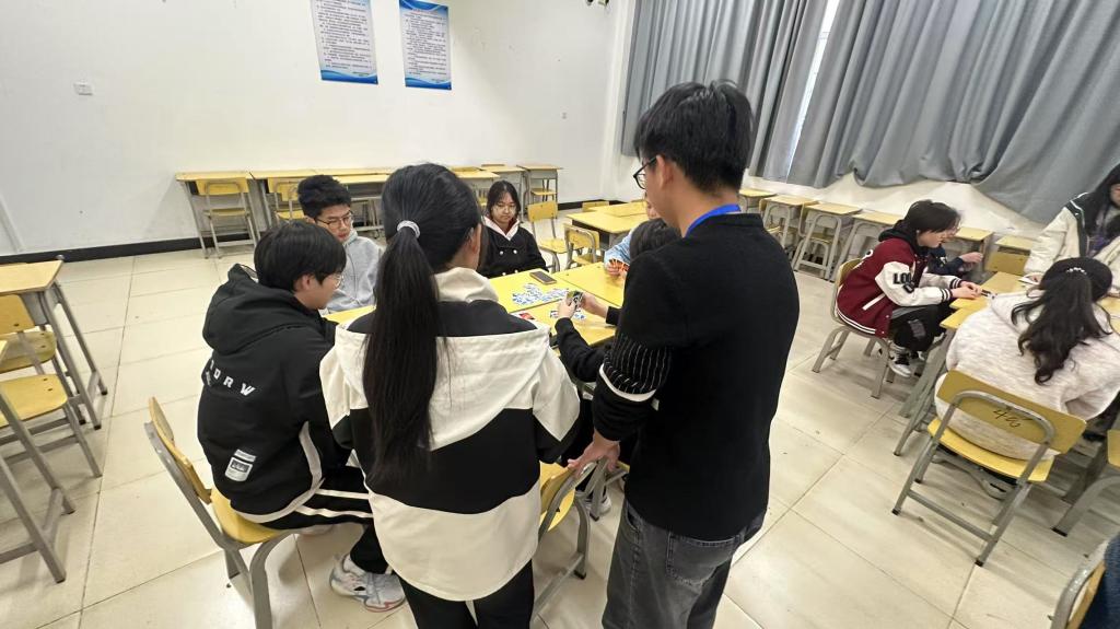 比赛当日,教室里充满轻松又紧张的氛围。选手们围坐在一起,全神贯注地盯着面前的桌游牌,眼神中透露出紧张与兴奋。他们需在短时间内分析局势,依据规则迅速做出决策,灵活地打出手中的牌。每一轮出牌都扣人心弦,现场气氛时而紧张得让人屏气敛息,时而又因某位选手的巧妙操作引发一阵欢呼。