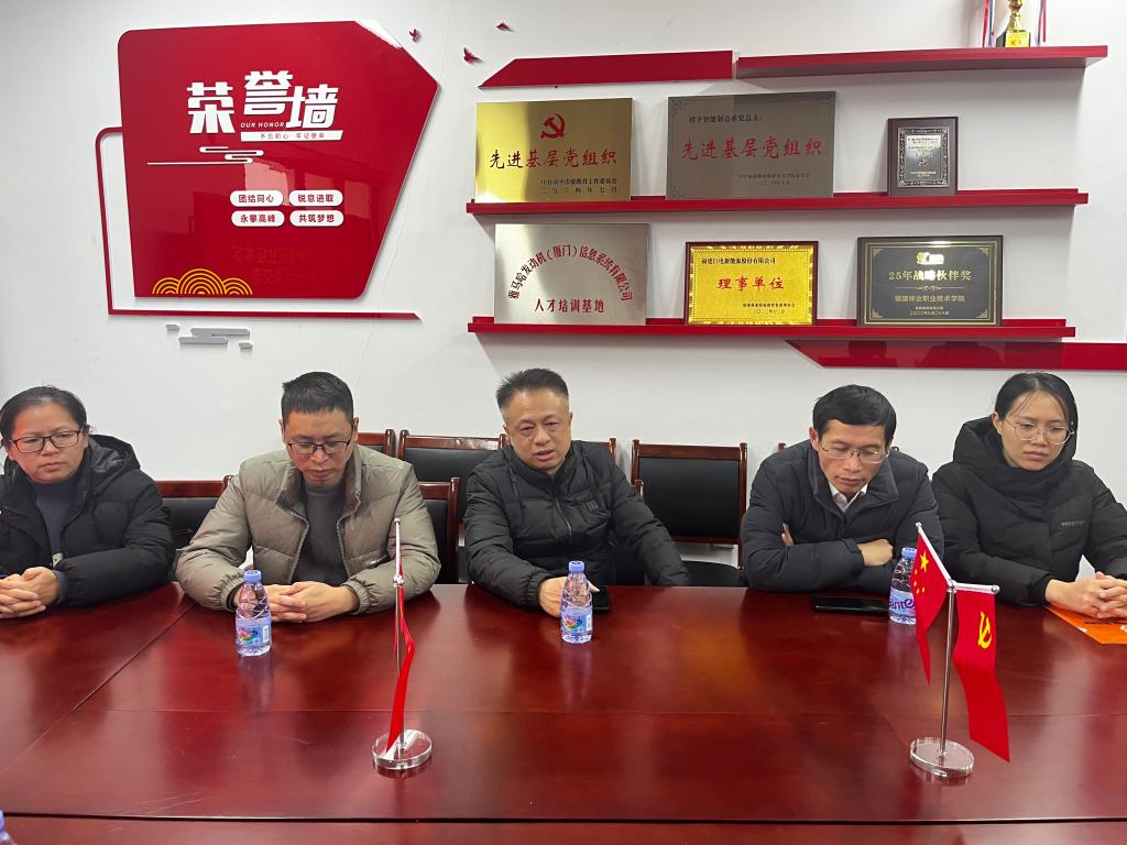 副主任(主持工作)官飞对湄洲湾职业技术学院自动化工程系领导和教师代表的到来表示欢迎,他介绍了智能制造系在师资队伍建设、专业群建设、技能大赛、产教融合等方面的情况。同时希望能够进一步加强两校交流,优势互补,开展务实深入合作。