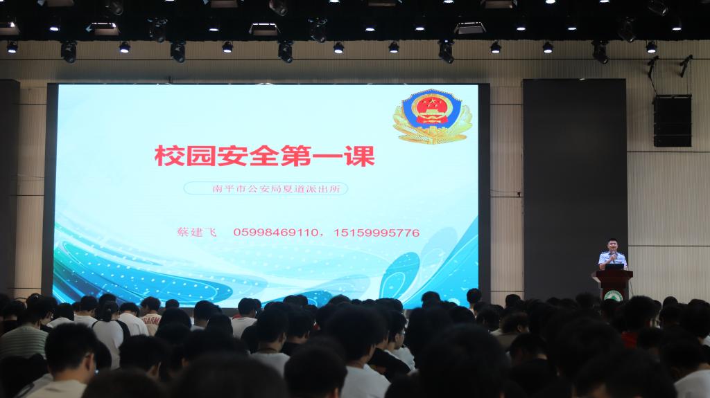 讲座特邀南平市公安局夏道派出所的蔡建飞警官担任主讲嘉宾。蔡警官以其丰富的实践经验和深入浅出的讲解方式,赢得了在场师生的热烈掌声。他首先强调了校园安全的重要性,并详细介绍了反诈APP的功能和使用方法,鼓励同学们积极下载并安装,以提高自身防范电信网络诈骗的能力。
