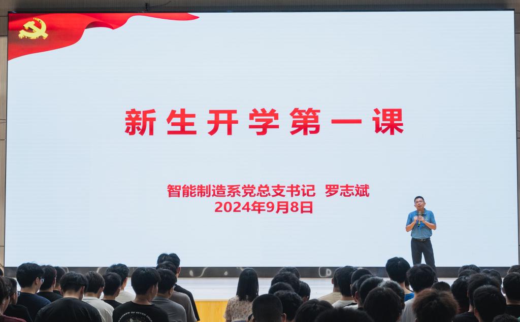 2024年9月8日晚,智能制造系全体新生齐聚江南体育馆,迎来了一场别开生面的“开学第一课”。本次新生入学教育第一课由智能制造系党总支专职组织员张良英主持,智能制造系党总支书记罗志斌主讲。主题为《奋斗百年路,启航新征程》,旨在通过回顾中国共产党的丰功伟绩、传承精神血脉、以史为鉴开创未来,同时加强理想信念教育、爱国主题教育和廉洁教育,为新生们的大学生活指明方向。