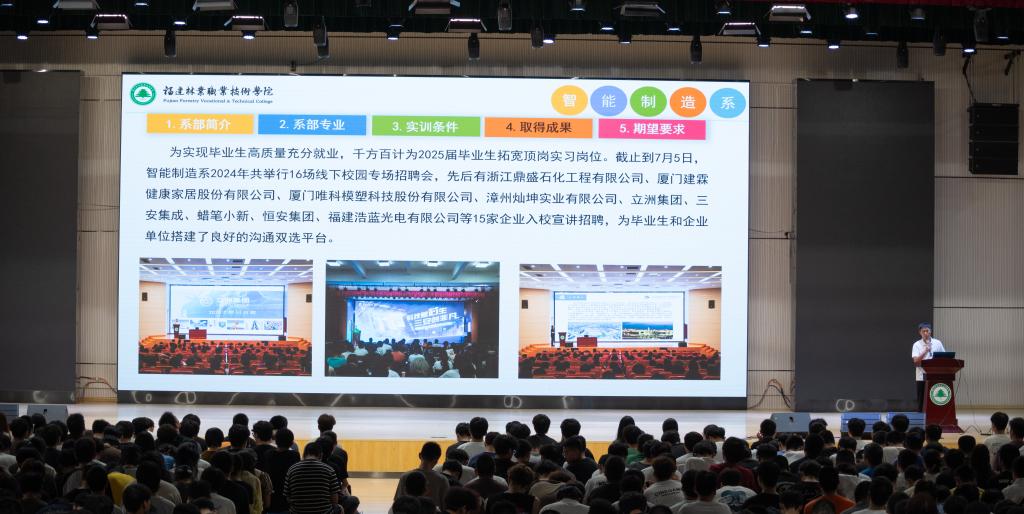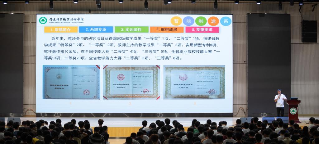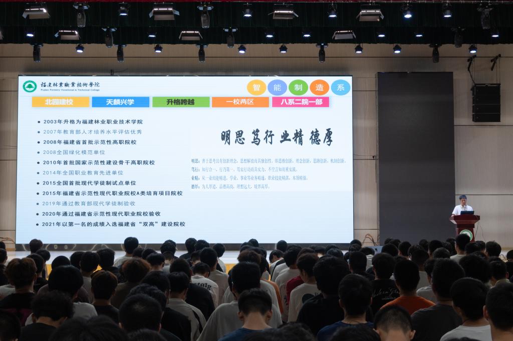 随着讲座的圆满结束,现场响起了热烈的掌声。官飞老师的精彩演讲不仅让新生们对学院和系部有了更加全面的认识,更激发了他们对大学生活的无限憧憬和热情。相信在接下来的日子里,智能制造的学子们将满怀梦想与激情,在福建林业职业技术学院这片沃土上茁壮成长,为实现个人价值和社会贡献而不懈努力。