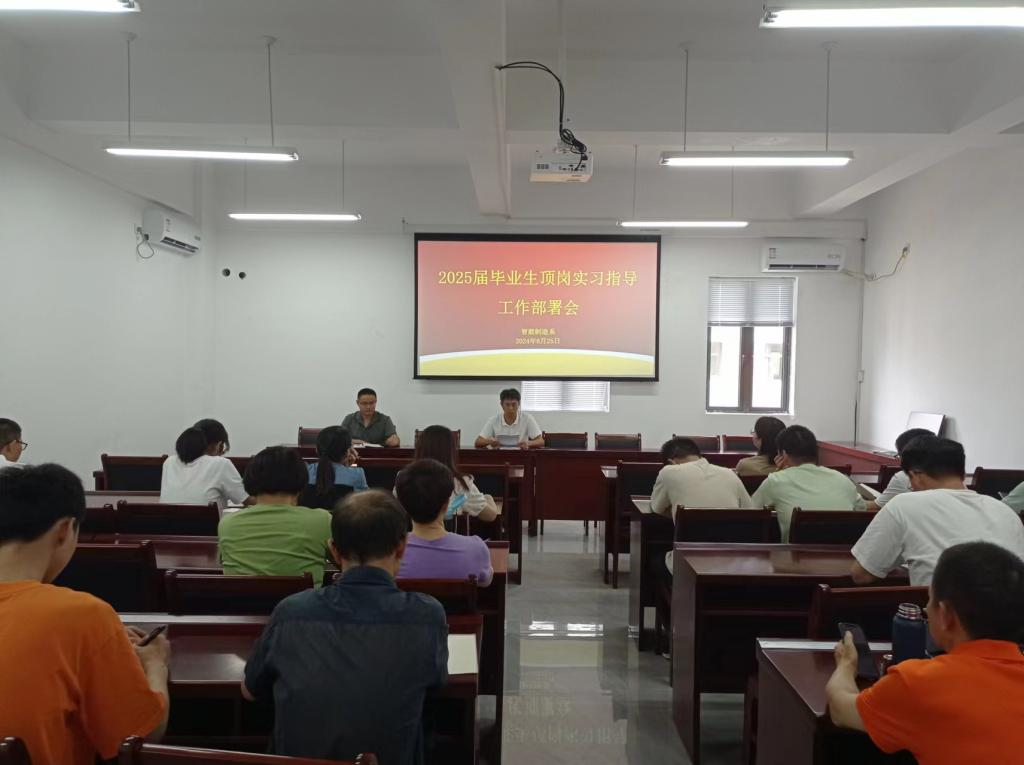 6月25日下午,智能制造系在智造楼五楼会议室召开2023-2024第二学期期末教学工作会议暨2025届毕业生顶岗实习指导工作部署会。会议由副主任(主持工作)官飞,教务科长傅祖发及全体指导教师参加。