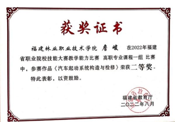 在快速发展的时代背景下,教育也需要不断创新与变革。詹老师非常明白这一点,所以他带领教师团队积极的参加了高职院校教师教学能力大赛,以赛促教、以赛促改,在比赛中探索着职业教育的新理念和新模式。经过了不断的参赛,多次的打磨,把《汽车电器设备构造与检修》这门课程打造成了把三维目标和企业用人需求相融合、把教学过程和企业生产过程相融合;把工作任务和竞赛经典案例相融合、把技能考核和竞赛技能标准相融合;把教学内容和1+X证书内容相融合、把教学评价和1+X考核标准相融合的“三维度、六融合”的岗、课、赛、证深度融合课程体系。解决了汽车专业人才培养过程中,制定检修方案能力弱、排除实车故障能力弱、安全规范操作能力弱故障检修逻辑思维难提升、规范检修求精意识难维系、方案制定创新意识难培养的三弱三难问题,提高了人才培养的质量。