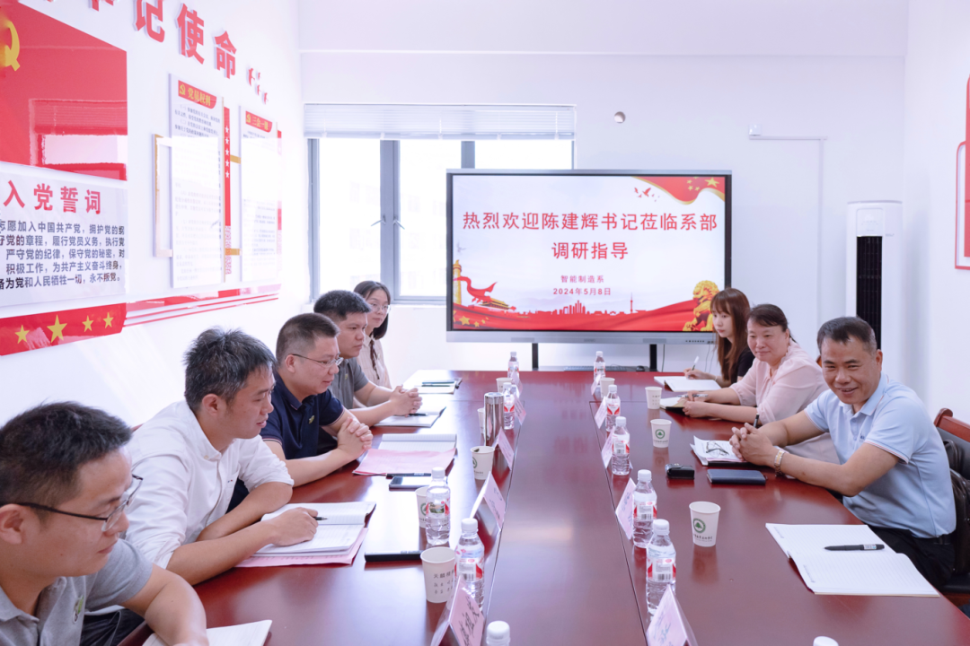 在听取汇报和交流沟通后,陈建辉书记对智能制造系在党建创先争优、学生管理、技能大赛上取得的成绩给予高度的肯定,对系部浓厚的干事创业氛围、用心用情用力的工作态度给予了充分肯定,并对系部未来发展提出三点建议:一是要提高站位。深化党建引领,始终以立德树人为根本任务,在党建与业务同频共振上持续发力,持续营造浓厚的干事创业氛围。二是要坚定信心。各项工作需紧跟时代步伐,坚定信心,审时度势、顺势而为、乘势而上,在业务上争先创优,在质量上追求卓越。三是要担当作为。在实际工作中,要牢记为党育人、为国育才初心使命,整合各方资源,持续抓好师资队伍建设,鼓励教师们担当作为,争取系部发展取得新的突破。