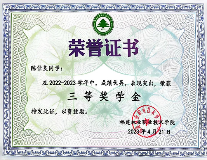 3.2022---2023学年获得学院三等奖学金、“优秀毕业生”称号