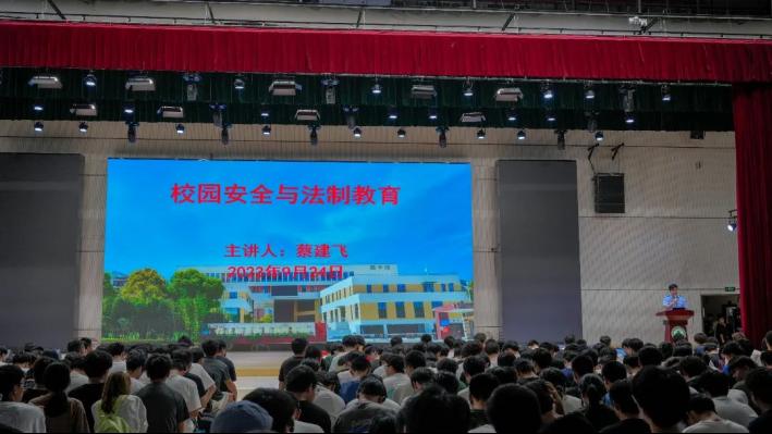 为切实加强校园安全教育,增强2023级新生的法治意识、安全防范意识和自我保护能力,智能制造系于9月24日19时组织2023级新生在江南体育馆开展“校园安全与法制教育”讲座。本次讲座由夏道镇派出所警官蔡建飞主讲,系学生科长兼团总支书记张碧清主持。
