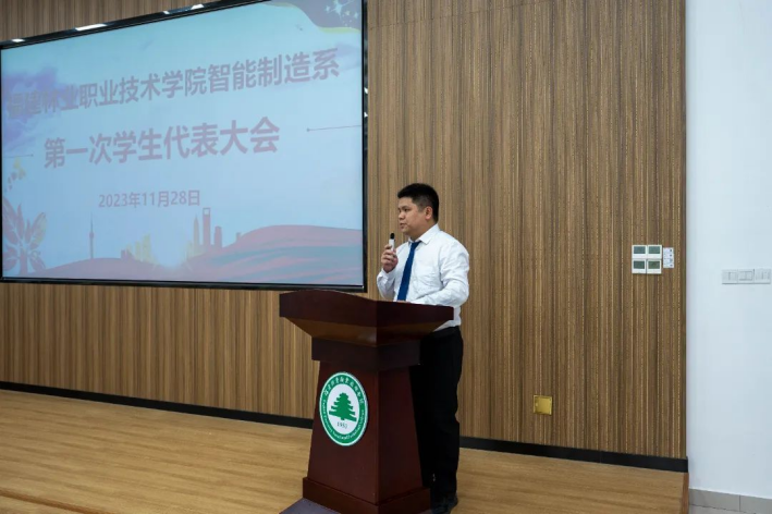 会议听取、审议福建林业职业技术学院智能制造系第一届学生会工作报告,2022级陈丽珍同学代表智能制造系学生会作过去一年的工作报告。