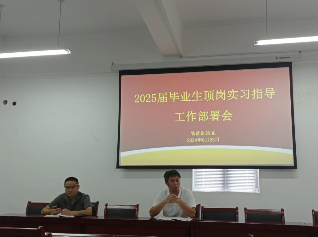 6月25日下午,智能制造系在智造楼五楼会议室召开2023-2024第二学期期末教学工作会议暨2025届毕业生顶岗实习指导工作部署会。会议由副主任(主持工作)官飞,教务科长傅祖发及全体指导教师参加。