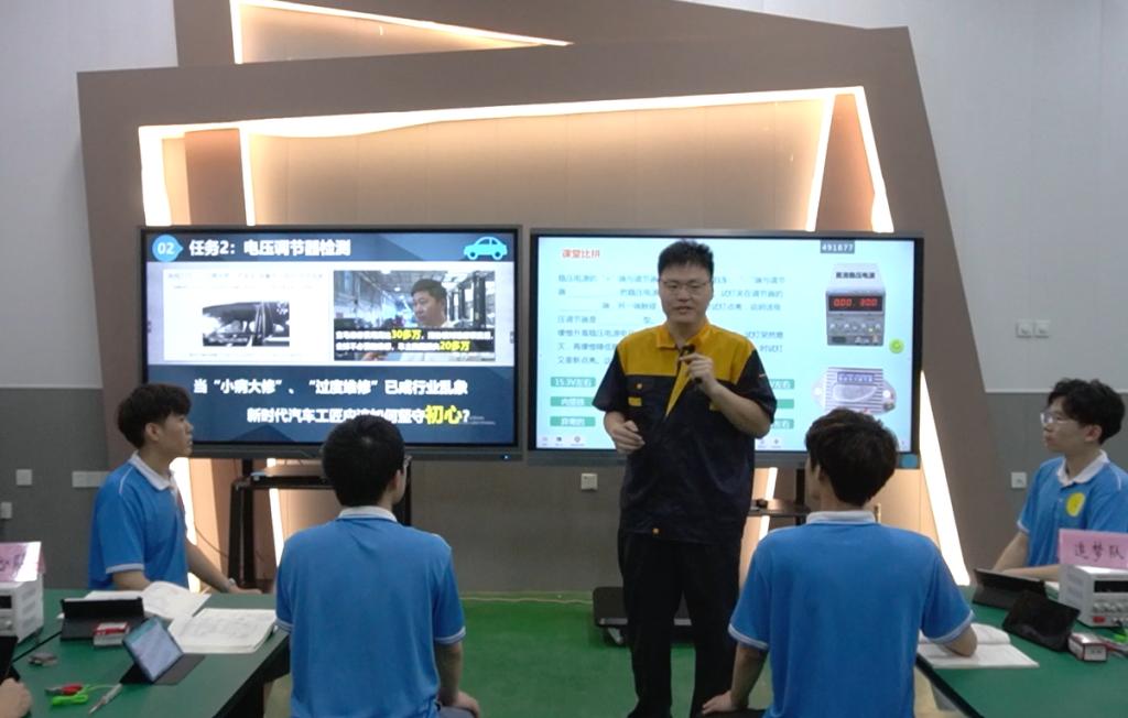 在快速发展的时代背景下,教育也需要不断创新与变革。詹老师非常明白这一点,所以他带领教师团队积极的参加了高职院校教师教学能力大赛,以赛促教、以赛促改,在比赛中探索着职业教育的新理念和新模式。经过了不断的参赛,多次的打磨,把《汽车电器设备构造与检修》这门课程打造成了把三维目标和企业用人需求相融合、把教学过程和企业生产过程相融合;把工作任务和竞赛经典案例相融合、把技能考核和竞赛技能标准相融合;把教学内容和1+X证书内容相融合、把教学评价和1+X考核标准相融合的“三维度、六融合”的岗、课、赛、证深度融合课程体系。解决了汽车专业人才培养过程中,制定检修方案能力弱、排除实车故障能力弱、安全规范操作能力弱故障检修逻辑思维难提升、规范检修求精意识难维系、方案制定创新意识难培养的三弱三难问题,提高了人才培养的质量。