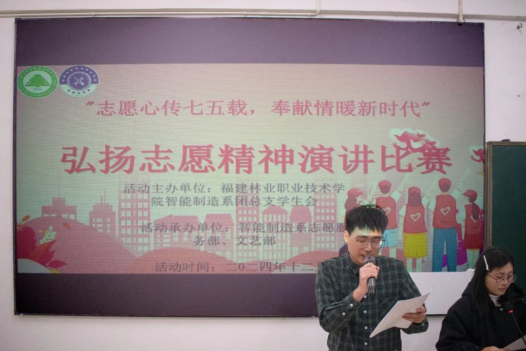 为展现青年志愿者昂扬向上、奋发有为的精神风貌,进一步培育青年志愿者锐意进取、勇攀高峰的良好品质。12月7日18时,在教学楼305教室里,“志愿心传七五载,奉献情暖新时代”弘扬志愿精神演讲比赛完美谢幕。