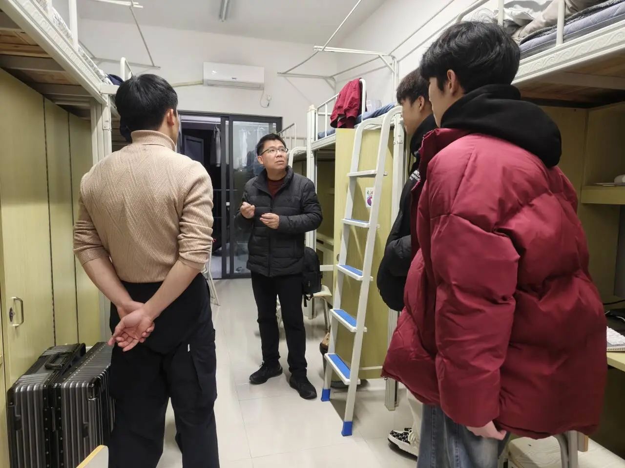 走访过程中,党政班子成员与辅导员们深入每一间宿舍,与同学们亲切交谈。他们仔细询问了同学们假期的学习和生活情况,了解同学们在新学期的学习计划和目标,耐心倾听同学们在生活中遇到的问题和困难,并给予了切实可行的建议和帮助。老师们还特别强调了宿舍安全的重要性,检查了宿舍的用电设施、消防设备等,提醒同学们要增强安全意识,共同营造安全、和谐的宿舍环境。