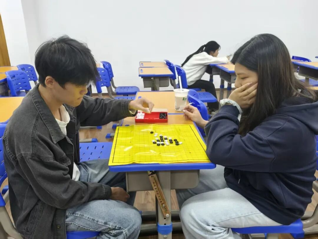 比赛现场始终洋溢着专注而热烈的氛围,选手们静坐对弈,神情专注。赛场上,黑白棋子在棋盘上快速落定,选手们凭借敏锐观察力抢占先机,攻防转换间尽显速度与智慧。赛事期间,观赛同学围坐一旁,时而为精妙走法鼓掌,时而为紧张局势屏息,不少同学赛后表示:“看着选手们在棋盘上‘排兵布阵’,不仅感受到了棋艺的魅力,更学到了冷静思考、统筹全局的态度。”